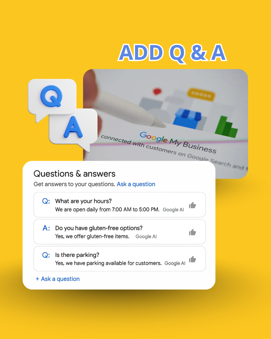 Answer common customer questions directly on your profile to improve engagement.