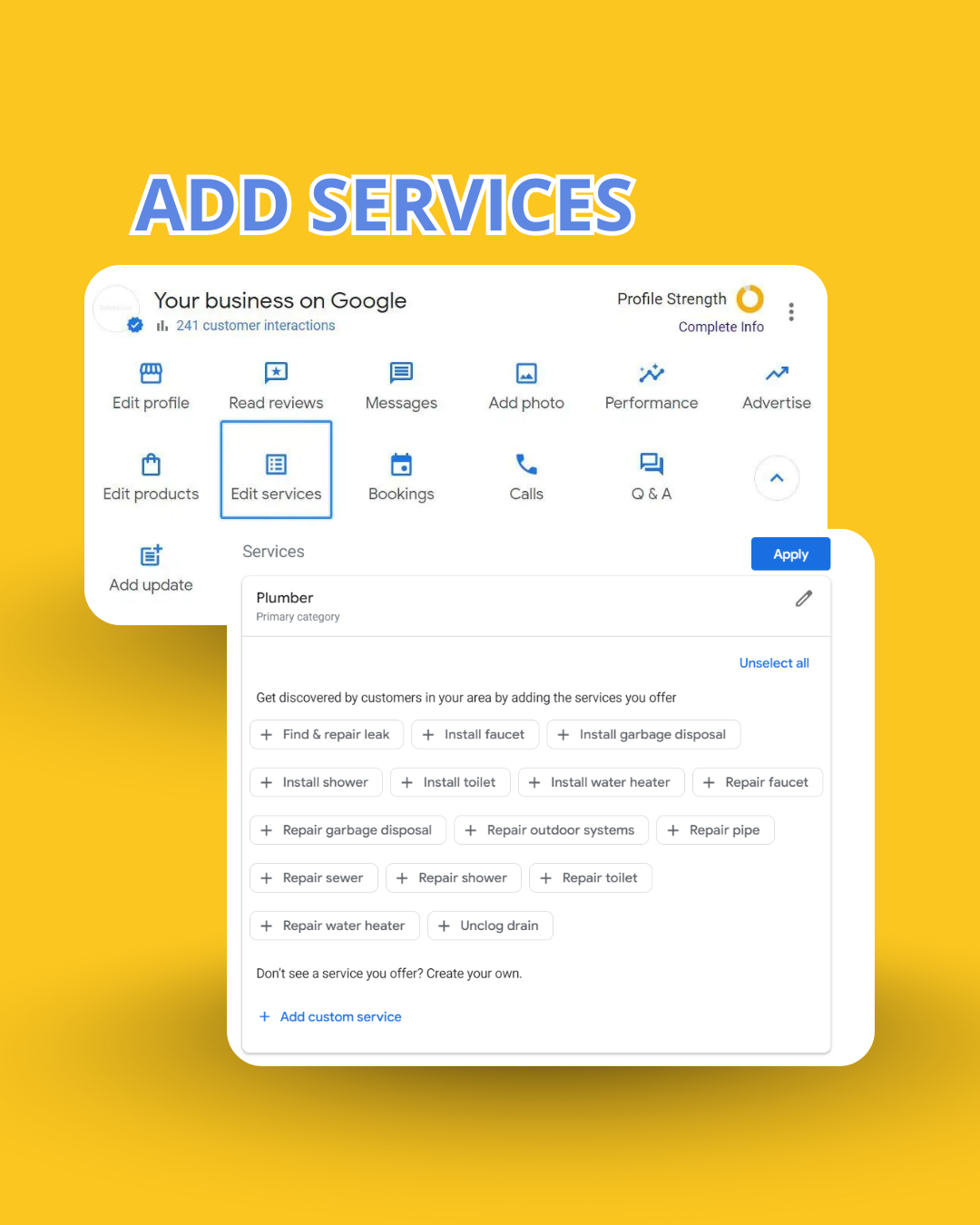 Detailed service entries ensure your profile appears in more specific searches.